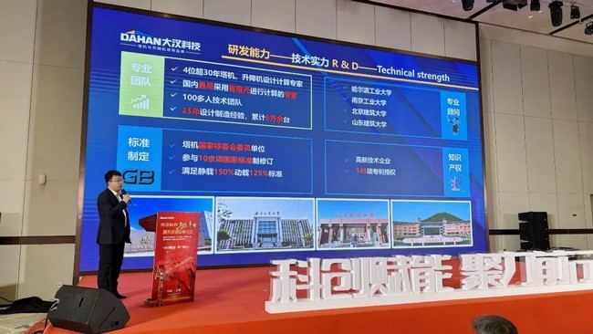 大漢科技副董事長(zhǎng)張茹張總為全場(chǎng)的領(lǐng)導(dǎo)和嘉賓朋友帶來(lái)題為《技術(shù)創(chuàng)新與智能制造現(xiàn)企業(yè)高質(zhì)量發(fā)展》的演講報(bào)告。張總從研發(fā)能力、制造能力、產(chǎn)品系列、品牌服務(wù)四個(gè)維度闡述了大漢科技全球領(lǐng)先的研發(fā)定位,目前塔機(jī)產(chǎn)品三項(xiàng)“世界突破”,三項(xiàng)國(guó)家獎(jiǎng)項(xiàng),省級(jí)獎(jiǎng)勵(lì)11項(xiàng),2項(xiàng)科技成果鑒定(國(guó)際先進(jìn)/國(guó)內(nèi)領(lǐng)先)。全球領(lǐng)先的制造能力,擁有總投資10 億元的智能化工廠(chǎng),行業(yè)領(lǐng)先的四大工藝,是國(guó)家智能制造示范工廠(chǎng),山東數(shù)字工廠(chǎng),綠色工廠(chǎng)。產(chǎn)品系列聚焦塔機(jī)與升降機(jī)產(chǎn)品,產(chǎn)品持續(xù)升級(jí),應(yīng)用場(chǎng)景不斷深化,持續(xù)廣泛在房建、電力、路橋、工業(yè)和港口、超高層等項(xiàng)目進(jìn)行應(yīng)用,特別是今年1月交付的韓國(guó)三星防爆升降機(jī)是全球首臺(tái),成為韓國(guó)三星集團(tuán)合格供應(yīng)商。