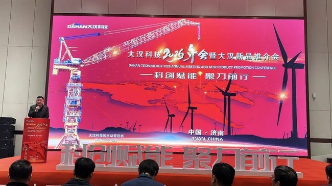 1月24-25日,全國(guó)各地近350名領(lǐng)導(dǎo)、專(zhuān)家和嘉賓朋友齊聚大漢科技共同見(jiàn)證“科創(chuàng)賦能 聚力前行 || 大漢科技2026年會(huì)暨大漢新品推介會(huì)”的榮耀啟幕和DHL3300-220T風(fēng)電動(dòng)臂塔機(jī)、DH3180-160T大型塔機(jī)、D650-45T動(dòng)臂塔機(jī)以及第三代智能升降機(jī)、塔筒施工升降機(jī)、出口特制施工升降機(jī)等系列產(chǎn)品的華彩綻放和全新上市。