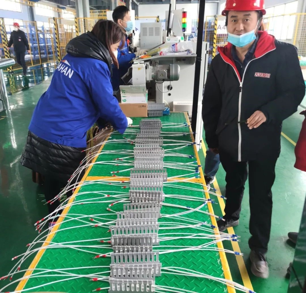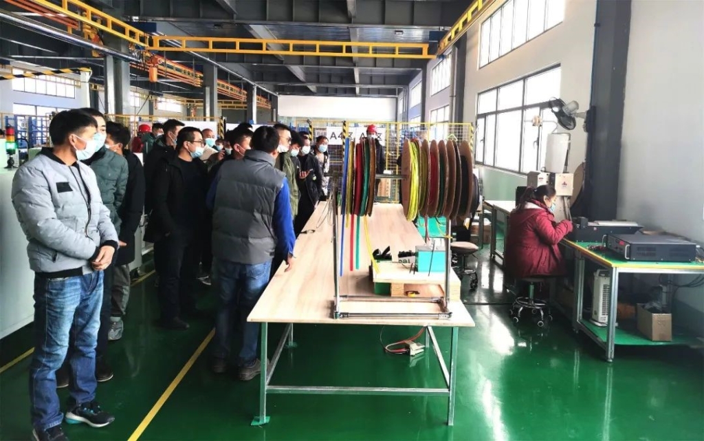 培訓(xùn)期間,參觀了電氣車間,電氣高級工程師講解了大漢科技自主研發(fā)的升降機一體機流水線及檢驗調(diào)試系統(tǒng)、線束線纜全自動加工機、塔機電控加工流水線、塔機電控整機調(diào)試。在員工體驗培訓(xùn)區(qū),電氣工程師通過現(xiàn)場實物,一一解答客戶人員工作中的疑難問題,提高客戶人員工作中的實戰(zhàn)水平。